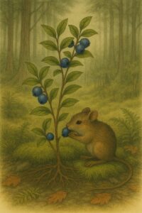 森の中で青い果実はよく目立ち、鳥や小型哺乳類にとって格好の食料となった。