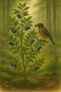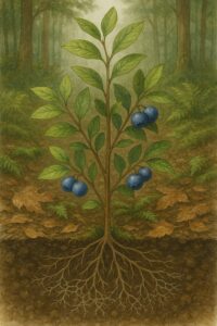 その薄暗い林床で、野生のブルーベリーはひっそりと生きていた。