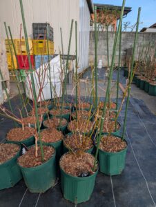 いしいナーセリーの苗木は健全な成長を優先して育てているため、毎年春前に全ての花芽を落とします。